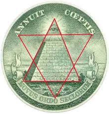 facut. Piramida reprezinta organizatia Ordinul Iluminatilor si varful ei contine ochiul simbolizand Casa de Rothschild, care controleaza Ordinul. In Egipt, piramida reprezinta colina piramidala, simbol al luminii renascute dupa descresterea Nilului. In spatele piramidei se vade un desert. Este Europa haotica si conflictele nesfarsite. In fata piramidei se vad culturi. Prin acest simbol iluminatii exprimau “Am fugit de toate astea si am creat un stat in numele ratiunii, nu in numele puterii si din aceasta vointa s-a nascut un nou tip de viata.”